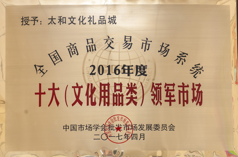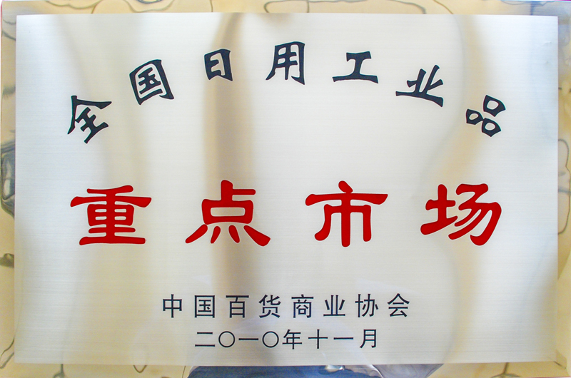 尊龙凯时文化礼物城荣获 天下日用工业品重点市场牌匾