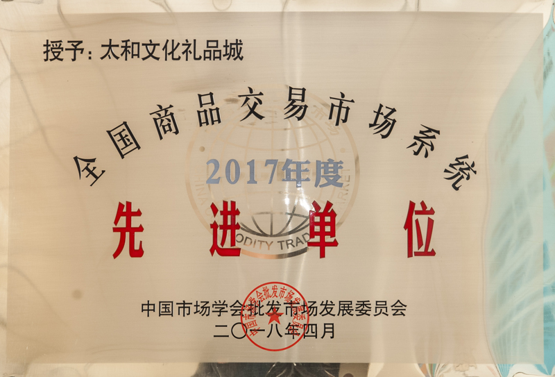 尊龙凯时文化礼物城荣获 2017年度天下商品生意市场会员先进单位