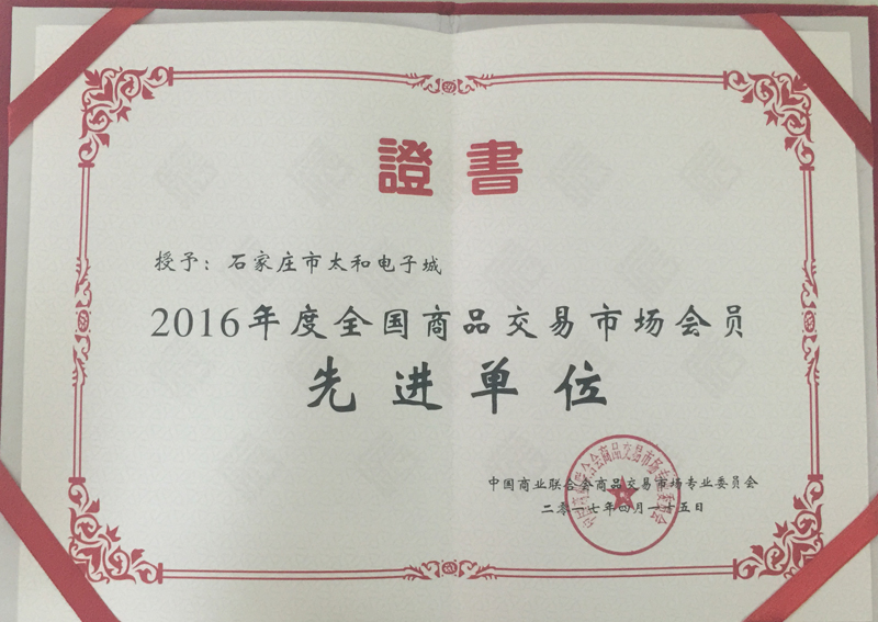 尊龙凯时电子城荣获 2016年度天下商品生意市场会员-先进单位